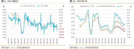 需要说明的是PMI同比指标与工业增加值、名义GDP虽然走势一致,但并未体现出领先性,甚至略有滞后,这与PMI仅反映方向而未充分反映变化幅度有关。而PMI同比与出口、PPI的一致性更高。当然,毕竟PMI同比、工业增加值同比的底部都在2月,应该还是有一定的参考意义。
