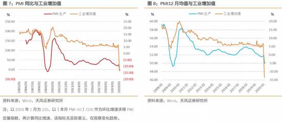去年前3个月工业增加值定基指数分别为190.10、138.40、208.30,今年2月仅为102.60(注意到2月低增长还是在去年2月春节低基数的前提下实现的,可见疫情期间生产收缩幅度之大)。这意味着,3月工业增加值环比需要翻倍才能勉强维持同比零增长,这么来看54.1%的PMI生产指数回升幅度其实并不高。因而,3月PMI回升偏弱,工业增加值同比增速预计仍然会大幅负增长。