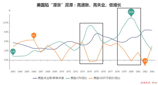 正是在这种情况下,20世纪70年代,长达十余年的滞涨(增长停滞+通货膨胀)突然来袭,与黄金时代形成鲜明对照,将美国经济、社会带入瞬时带入黑铁时代,引发了巨大的社会反弹。
