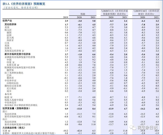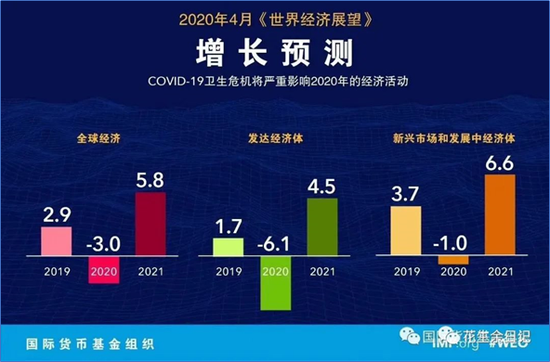 【前言】因为COVID-19疫情,IMF与4月14日在线上春季年会期间发布了《世界经济展望/WEO》,预测2020年全球增长率降至-3%,与1月的预测相比下调幅度高达6.3个百分点。IMF将此次疫情导致的严格防控措施和经济冻结称为“大封锁”(the Great Lockdown),并认为这是“大萧条”(the Great Depression)以来最严重的经济衰退,远超2008年金融危机。IMF预计,美国2020年和2021年经济增速分别为-5.9%和4.7%,欧元区为-7.5%和4.7%,日本为-5.2%和3%,中国则为1.2%和9.2%。当然,IMF的预测是假设多数国家的疫情和必要防控行动在第二季度达到峰值并在下半年消退,若疫情延续时间过长,实际情况可能会更差于当前的预测。