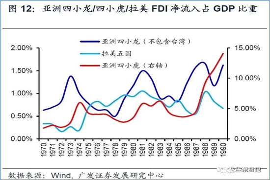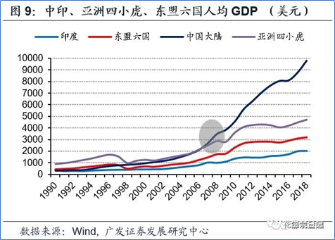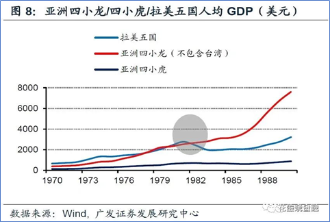 假如中低收入国家未能利用劳动力优势参与国际分工并转型为生产国,仅仅依赖资源优势推动经济发展,则其人均收入迈向中高收入国家、人力成本优势不再时就会掉进中等收入国家陷阱,比如80年代初的拉美以及90年代的亚洲四小虎。对比之下,中国仍处于中高端产业承接期,跨过中等收入国家陷阱、跻身高收入国家行列是大概率。