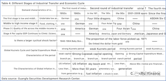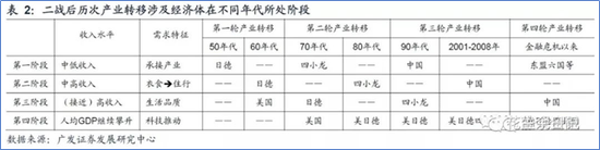 二战以后,全球已经经历了三轮产业转移:50-60年代美国中低端产业向德国及日本等国转移;上世纪70-80年的日德中低端产业向亚洲四小龙和亚洲四小虎转移;上世纪90年代至2010年全球中低端产业向中国转移。金融危机后,全球正在发生第四轮产业转移,也即:中国中低端产业向东盟等经济体转移,同时中国承接全球中高端产业。