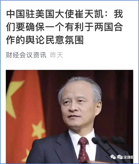 显然,面对欧美国家的挑战和阻扰,中国将如何破解时局并走出困境,是未来从国家到企业都要面对的挑战。为此,中国驻美大使崔天凯频频约见美国媒体,释放善意。他强调,他的重要工作之一“就是确保一个有利于两国合作的舆论民意氛围”。