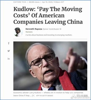 关于第三个点与第四点,由于贫富分化与民粹主义盛行于一些西方国家,“逆全球化”和“去中国化”已经媒体报道和外交事件中崭露峥嵘了。特别是全球生产链有逐步w瓦解分裂的苗头。比如:美国政府首席经济顾问库德洛就建议给撤回美国本土的企业100%报销费用,而日本也推出22亿美元预算帮助日本企业撤离中国。截止4月14日,日本贸易振兴机构(JETRO)调查发现,有8.3%的华南地区日资企业因为此次疫情而决定将其业务撤离中国,主要回流日本或搬去越南。