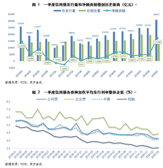 图 1 一季度信用债发行量和净融资规模创历史新高(亿元)