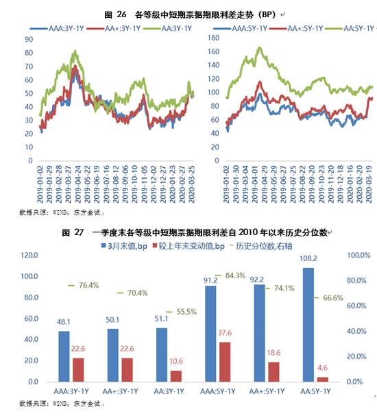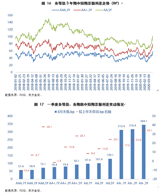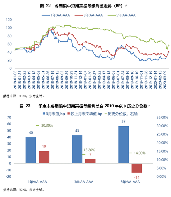 (四)3月中下旬等级利差大幅走阔,带动季末等级利差水平普遍高于上年末