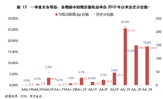 一季度流动性宽松、资金利率走低带动债市短端利率大幅下降,长端也有跟降,但下行幅度相对较小,信用债期限利差明显走阔。