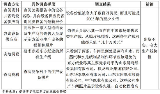 因此,调查人员在实地考察产生疑问之后,从多个方面佐证了自己的研究,包括查阅公开资料、进行中文线上咨询、咨询行业专家、获取制造设备的报价和规格、从核心子公司本身获取产品报价、与东方纸业的宣称的客户交谈等多种方式获取证据。