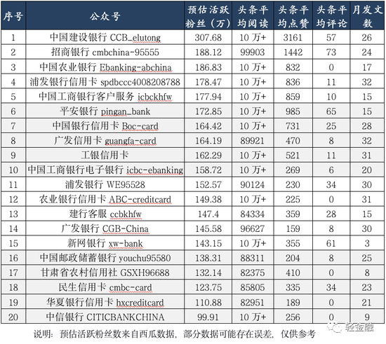 表2:2020年4月各银行公众号大号活跃粉丝情况