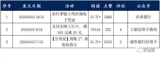 中医讲究望闻问切,看一看5.1期间及相邻时段各银行百万级的公众号大号热闹营销,分析其问题,可以得到在疫情后大众对零接触服务需求大幅度上升的情况下,有效提升银行微信营销服务的有益启示。