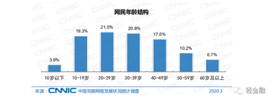 另外,从互联网的网民构成来看,存在明显的年轻化和低学历的特点。据中国互联网信息中心2020年4月发布的《第45次中国互联网络发展状况统计报告》显示,我国网民中10-39岁占比61.6%,其中20-29岁占比21.5%,30-39岁占比20.8%。