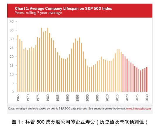 数据显示,19世纪80年代上市的美国公司的存活率平均在13%左右,而2000年后上市的公司的存活率约为57%(详情见表2)。事实上,美股上市公司的平均寿命正在快速缩短。根据麦肯锡的一项统计,标普500指数成分股公司在1958年的平均寿命为61年,而在2017年时,这一数字为18。麦肯锡还预计标普500指数当前成分股公司中的四分之三都将会在2027年前消失,可能是被并购或者破产清算。