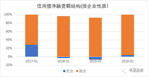 1,信用债市场的顺周期性与货币政策意图不匹配。逆周期是货币政策的基本原则,央行总是倾向在经济差的时候投放更多的信用,但债券市场却不是。信用债市场总是顺周期的,晴天送伞,雨天收伞。过去两年民企融资难的环境下,中央和央行都希望资金向民企倾斜,但债券市场并没有,而是更大程度的歧视。债券市场的融资主体,是本来就不缺钱的国企。