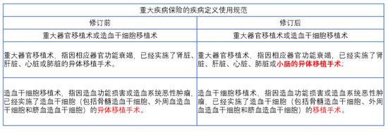 新版重疾定义中针对重大器官移植术,新增“小肠的异体移植手术”,而“造血干细胞移植”不再限定是异体移植,扩展了范围,使赔付的条件优化的更加合理。
