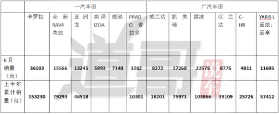 《道哥说车》带大家再来看看一汽丰田与广汽丰田旗下主力车型的销量情况。
