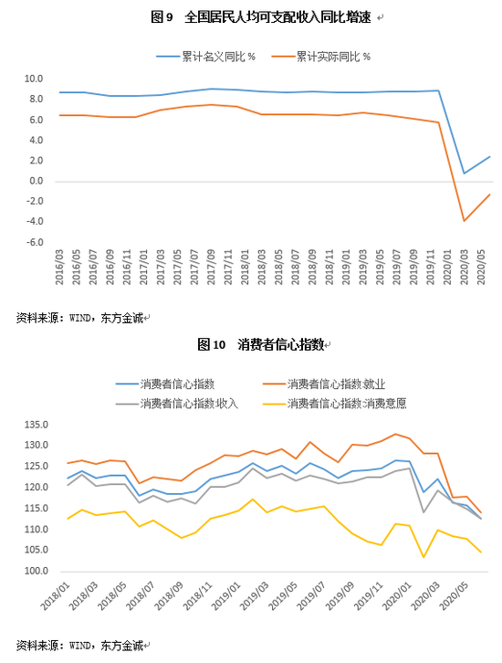 我们认为,在前期消费需求回补基本结束后,疫情阴云未散,以及就业形势严峻、可支配收入下滑等因素制约居民消费信心和能力回升,对居民新增消费需求的抑制作用开始显现。此前公布的7月通胀数据中,非食品CPI同比涨幅创下逾十年来新低,也印证了此种需求不足现象。