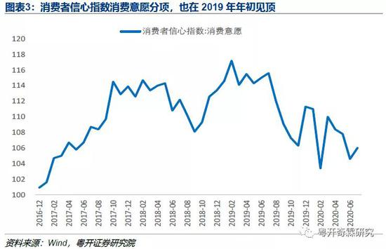 除了客观的消费增速外,也有偏主观的统计指标,显示居民消费意愿在下滑。比如由国家统计局发布的月度指标——消费者信心指数消费意愿分项,也在2019年年初见顶。
