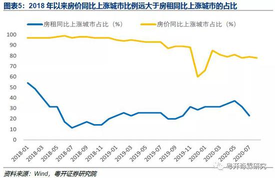 数据显示,2018年至今,各城市中住宅价格同比上涨城市的占比,要远大于房租同比上涨城市的占比,前者多数月份在85%以上,而后者大部分时间都在30%以下。也就是说房价同比上涨的城市,要远多于房租同比上涨的城市,不同资产规模人群的购买力出现了明显分化。