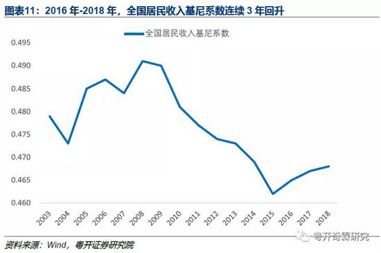 衡量收入分配的指标,一是基尼系数。2019年全国居民收入基尼系数还没有公布,最新数据是2018年的,截至2018年,中国居民的基尼系数已经连续3年回升。
