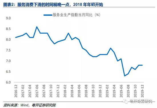 服务消费方面,也是这样,只不过时间稍晚一点,2018年开始下滑的。