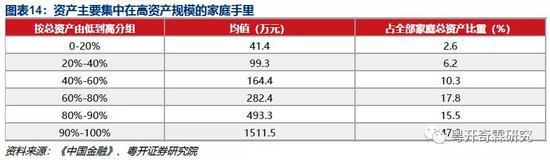这个调查还显示,资产规模最低的20%家庭,持有的资产仅占全部家庭资产的2.6%,而资产规模最高的20%家庭持有资产占比达到63.0%,其中资产规模最高的10%家庭持有资产占比达到了47.5%。