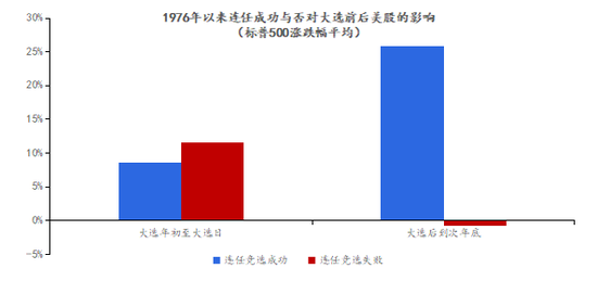 历史上,美国选举周期和美股表现有着显著的关联。在有现任总统参加的竞选中,若连任者获胜,大选之后美股走势表现相对较强;若新人当选,则美股大概率转跌。