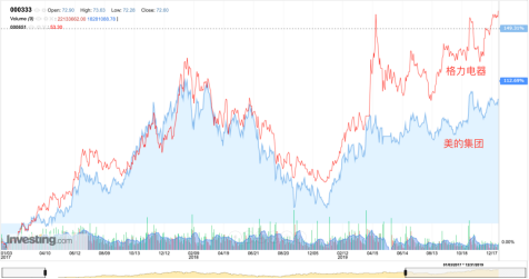 而不管是业务或产品,还是作为投资标的,格力与美的之争从来就没有断过。或许是由于董小姐自身“话题女王”的属性,前几年格力电器的热度都盖过了美的,投资回报率(2017年到2019年)也同样超过了美的集团。