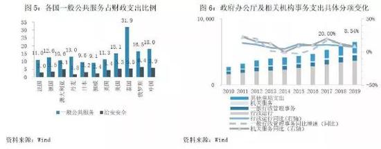 进一步细分看,政府办公厅及相关机构事务在我国一般公共服务中比达32%,是我国一般公共服务支出的重要去向,且2017年以来该项支出增速持续高于9%,快于经济增速。而其中行政运行费用占政府办公厅及相关机构事务占比超过67%,2019年,仅行政运行费用规模就达到3658亿元,近三年增速一直在9%以上。