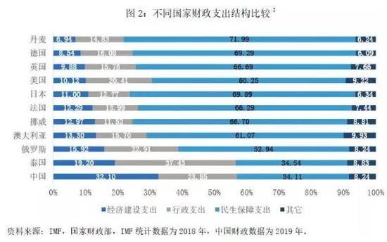 发达国家与发展中国家的财政支出结构上有很大差异。中国目前的财政支出结构仍然是典型的发展中国家的支出结构,主要体现为经济建设支出与行政事务支出占比高、民生领域支出较低,而发达国家的财政支出则是以社会保障、医疗卫生为主。