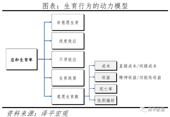 根据驱动生育率下降主导因素的变化,可以将人类历史划分为四个阶段:1)高死亡率驱动阶段,人们需要以高生育率抗衡高死亡率,总和生育率多在6以上。农业文明时期生养孩子的直接成本很低、农业生产的闲暇时间多、机会成本低。而且劳动密集型的农业生产模式决定生养子女的预期经济收益高,农民只能依靠养儿防老,家族地位也与人丁是否兴旺密切相关。公共卫生条件落后、战争频繁等因素导致死亡率高达20‰或30‰以上,这使得人民不得不以高生育率抗衡高死亡率。2)死亡率下降驱动阶段,人们认识到低生育率也能保证收益最大化,总和生育率从6以上降到3左右。随着公共卫生条件大幅改善、医疗技术大幅进步,死亡率持续大幅下降,人类不再需要以高生育率对抗高死亡率,生育率随着避孕节育技术进步而下降。从国际经验看,这种自然转变大多有15-25年的时滞。1950-1970年中国死亡率大致从约20‰降至8‰,1970-1978年中国总和生育率从5.8降至2.7。3)功利性生育消退阶段,人们的生育行为更接近情感需求,并重视子女质量提升,总和生育率大致从3降到2左右。由于死亡率已降至低水平,影响生育行为的主导因素转变为收益问题。随着经济社会现代化发展,生养孩子的直接成本上升,特别是受教育程度普遍提高后、女性更多参与就业使得生育孩子的机会成本上升;而在收益方面,精神收益与收入基本不相关,功利性收益下降,导致意愿生育数下降。并且,收入上升使得家庭对孩子质量的需求更大。这逐渐使得家庭的生育行为逐渐远离功利,接近一男一女两个孩子的情感需求,总和生育率大致降到2左右。中国这种转变大致发生在1979-1990年,除计划生育政策影响外,还在于改革开放后工业化、城市化快速推进,乡镇企业发展以及农村人口大量迁向城市打工。4)成本约束的低生育率阶段,总和生育率降至更替水平2以下,低于意愿生育水平。在现代社会,生育率的进一步下降不是因为意愿生育意愿数的减少,而主要是成本提高导致人们的生育意愿不能完全实现。实际生育水平与意愿生育水平的差距决定于成本的高低。