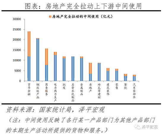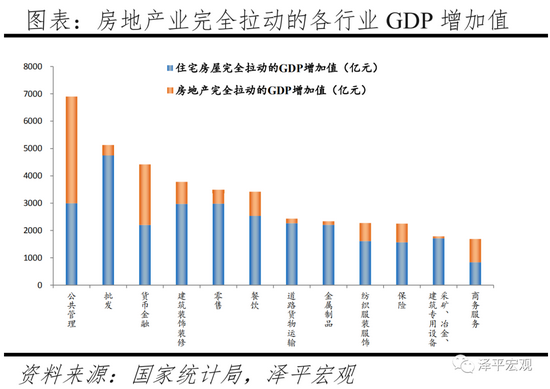 1998年房改后,房地产带动了一大批上下游行业发展且与庞大的资本相伴。在拉动GDP方面,2018年广义房地产合计完全拉动上下游其他产业GDP9.1万亿元,占GDP的9.9%;直接拉动上下游其他产业GDP3.5万亿元,占GDP的3.8%。投入产出表中房地产行业的影响主要体现在“房地产”和“住宅房屋建筑”,我们将投入产出表中这两个部门看作广义的房地产业。根据国家统计局最新发布的2018年投入产出表,可以获得房地产、住宅房屋建筑直接(完全)拉动系数,以及各部门中间使用。其中,货币金融、钢压延、商务服务部门由房地产完全拉动的中间使用最高,为2.4万亿、2.1万亿、1.6万亿。通过计算广义的房地产业拉动的各行业中间使用占该行业总中间使用比例,我们估算出广义的房地产业拉动的各行业GDP。其中房地产完全拉动上下游GDP2.7万亿元,住宅房屋建筑完全拉动上下游GDP6.4万亿元;直接拉动上下游GDP1.3万亿元,住宅房屋建筑直接拉动上下游GDP2.2万亿元。分行业看,房地产通过投资、消费既直接带动与住房有关的建材、家具、批发等制造业部门,也明显带动金融、商务服务等第三产业。其中,公共管理、批发、货币金融、建筑装饰部门由房地产拉动的GDP增加值居前列,分别为6900亿元、5126亿元、4416亿元、3781亿元。建材、建筑装饰、货币金融由房地产完全拉动的GDP占该行业总GDP占比最高,高达67%、45%、34%。