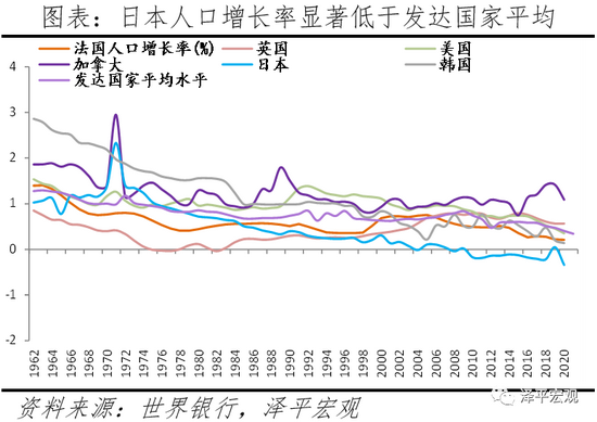 2020年日本总人口连续12年减少,较最高点下降1.5%,未来总人口将加速减少,按出生率高位数预测,到2065年总人口将减少1/4。从总人口看,日本总人口2008年达到最高点1.28亿后开始下降,2020年已降至1.26亿,降幅1.5%。根据日本国立社会保障和人口问题研究所,假设死亡率在中位数水平,按出生率低位数、中位数、高位数三种情况预测,预计2065年日本人口分别为8212.8/8807.7/9490.4万人,即使是最乐观情况,人口仍将减至2020年的3/4。从全球看,2020年日本总人口居世界11位,是1950年以来首次跌出前十;与英法美加韩相比,日本是人口负增长的国家,且人口增长率自80年代显著低于发达国家平均水平。