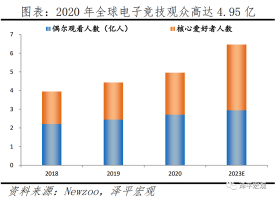 2020年,全球电子竞技观众近5亿人,电竞总收入达到11亿美元。