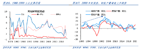 自从1978年十一届三中全会确定了改革开放作为基本国策,我国经济进入到热火朝天的现代化建设中。1980年至1999年我国GDP平均增速为9.87%,全社会固定资产投资平均增速为21.17%,GDP平减指数年平均增速为6.45%,整体社会总需求表现出高速增长状态。此时我国表现出“短缺经济”特征,国内需求较为旺盛。由于工业生产基础仍然薄弱,工业发展的首要任务是扩大规模,改变大部分商品短缺的状态,满足国内日益增长的物质文化需求(李晓华和沈继楼,2022)[1]。到1996年,我国商品市场基本告别短缺状态。
