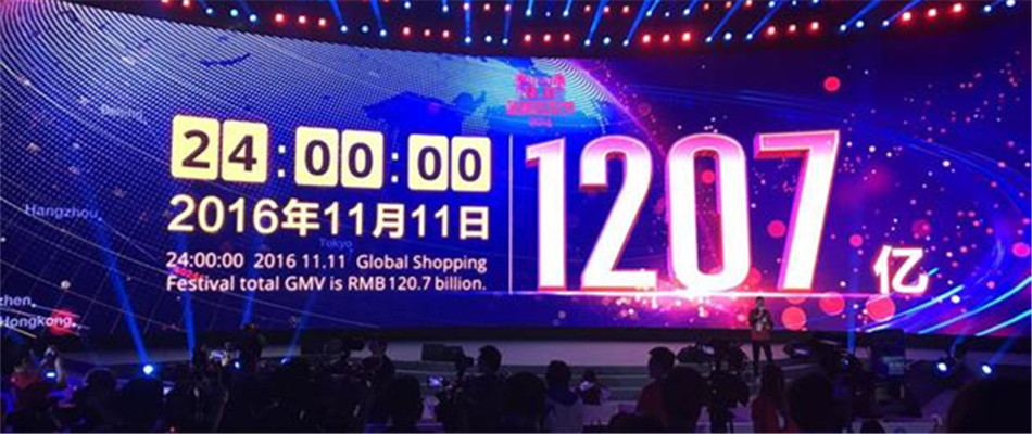 2016年天猫双十一销售总额刷新纪录,以1207亿元收官