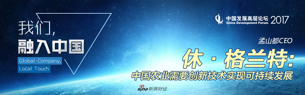 孟山都CEO休·格兰特称,中国的小农户需要新技术来实现农业的可持续发展,并使用更少的化学品、肥料和投入,在将来生产出更健康有营养的农作物。而进行中的孟山都与拜耳的合并,将加速科技创新的速度与范畴, 高效地利用自然资源, 促进农业可持续发展。