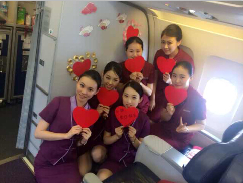 同一天,吉祥航空上海-三亚HO1129;上海-昆明HO1279;上海-成都HO1119;上海-哈尔滨HO1169;上海-深圳HO1201等另外5条由上海始发的精品航线,也在万米高空为广大旅客朋友送去七夕的祝福。七夕主题航班上,我们的客舱品牌组,为广大旅客准备了有趣的机上互动小游戏,并为头等舱和经济舱的客人们,准备了丰富的七夕节礼品。