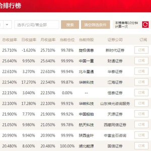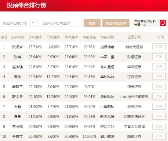 投顾十强三人手握涨停 张虎森赚25%重回榜首