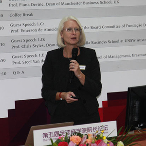 新浪财经讯 “第五届全球商学院院长论坛”于2014年10月9日-10日在上海举行。上图为英国曼彻斯特大学商学院院长Fiona Devine。
