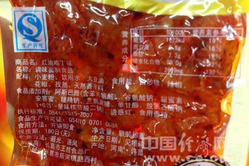 某款“辣条”食品营养成分表显示其钠含量为2649毫克/百克。中国经济网记者 韩肖/摄