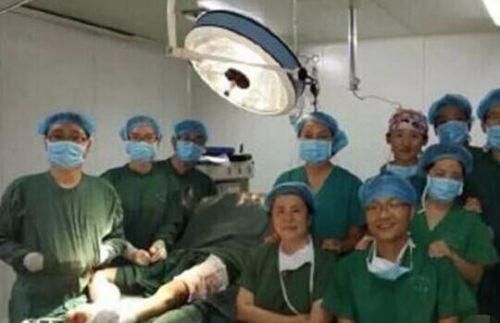 西安凤城医院医生手术室自拍照之一(图片来源:微博)