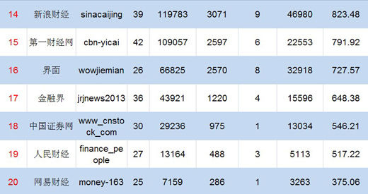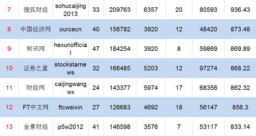 财经媒体微信号周榜单发布 网媒热门文章阅读数超纸媒