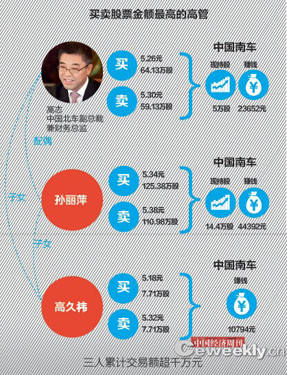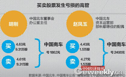 记者计算后发现,虽然大部分高管都获利,但也有两位高管在买卖股票后,还亏了本。分别是中国北车董事会办公室业务主任胡刚和中国北车资本运营部部长鄢德佳的配偶赵凤玉。