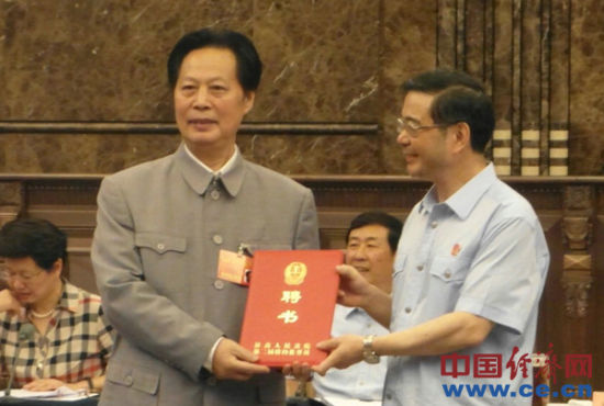 资料图片:全国政协委员、中国法治诗书画院院长汪国新(左)被聘为最高人民法院第二届特约监督员