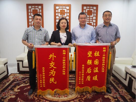 山东荣成海洋渔业有限公司向中国驻加纳大使馆赠送锦旗