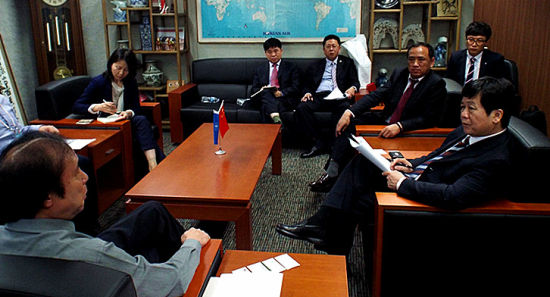 4月30日上午,考察团先后拜访中国交通银行首尔分行和韩国中国商会,分别与首尔分行南光赫行长及韩国中国商会堵泽田常务会长进行了亲切交流,了解在韩国投资企业金融服务政策及中国企业在韩国投资情况。