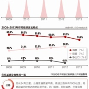 数据为证。1998年亚洲金融危机以后,印尼外来投资低迷,出口增长乏善可陈,国内消费成为经济反弹的关键。2001-2003年,私人消费支出占到印尼GDP的70%左右。虽然2004年开始,该比重降至60%-70%,2008年后更是进一步下降。但截至2014年末,印尼国内消费占GDP的比重十余年来均不低于50%。而这些年来,印尼的GDP年均增长都在5%-6%。