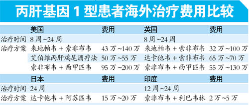 此时,治疗丙肝的特效药索非布韦已经在欧美上市将近半年,高达98%的治愈率让丙肝患者们喜出望外。大刘在听说了这种新药之后开始找中介机构咨询,他了解到通过中介去美国看病费用总和将近85万元,这个费用大刘说自己负担得起。