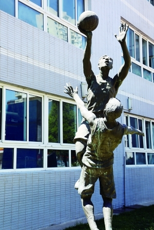 校园风貌 奥林匹克教育示范学校同心结雕塑 篮球雕塑 修葺一新的篮球馆 学校植物园一隅 阅读工程成果汇报展演