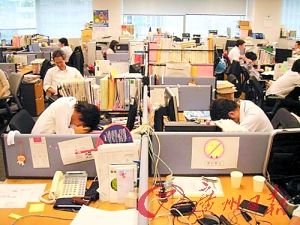 郑佳文:“拼命工作,彻底奉献”是日本职场通用信条。对不少日本男性来说,“朝6到晚11”工作模式很普遍。清早乘地铁到公司,上班加“例行”加班后,再与同事或客户去酒吧饮酒,凌晨3点烂醉回家,太阳未升起便要返回公司。